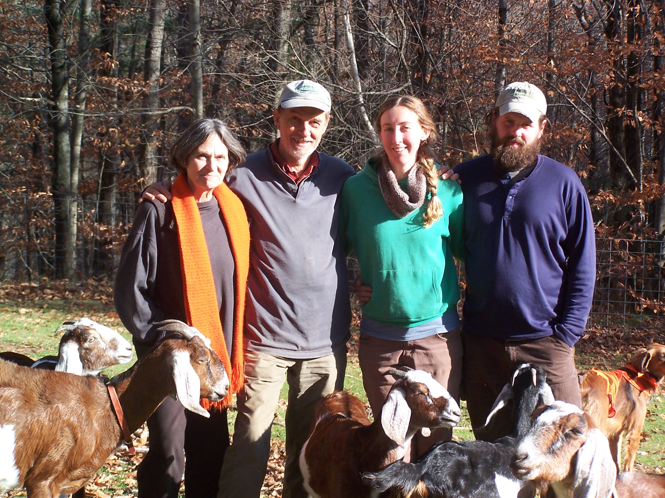 This led us to Janet Pence and Brian Kent, and after meeting with them, all four of us knew it was a serendipitous match. We fell in love with the land, the beautiful forest with a cascading stream through the middle, the stone walls, the aesthetic of the fields, barn, and homestead lovingly created by Brian and Janet over their nearly 40 years there. We decided to do a “year trial,”planted garlic that fall, and returned to inhabit a three-season cabin the following spring. Within the first week we fenced in some fields, took over their unused barn, and started our goat herd with a milking doe, two doelings and a buckling; set up three beehives (“the land of milk and honey,” we said); and tilled and planted 1/4-acre subsistence garden.